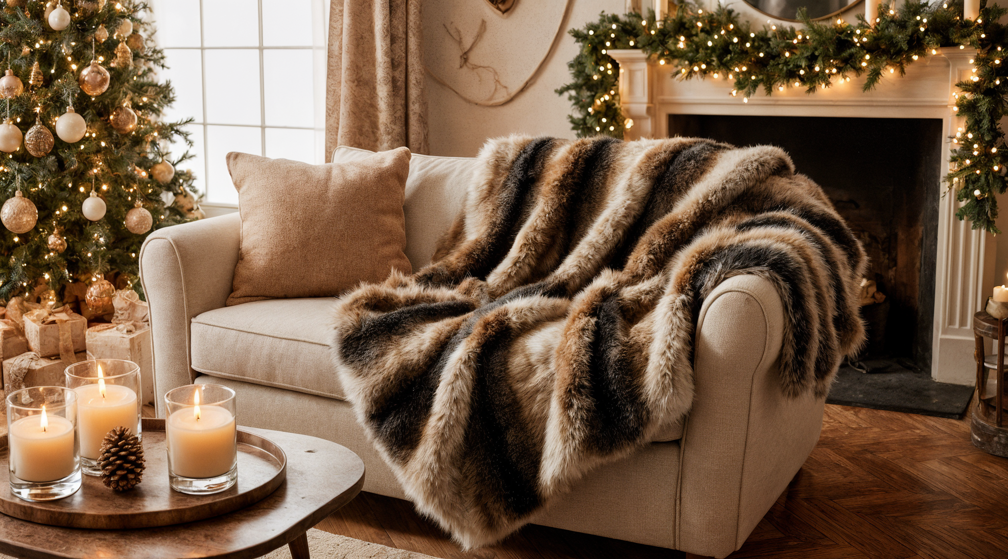 Luxury Faux Fur Blanket – Fluffy Plaid Throw, Thick Warm Winter Sofa Blanket, Plush Bed Throw