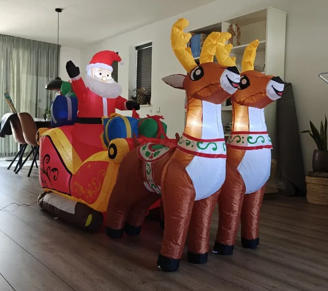 2.1m Santa and Reindeer Sleigh Inflatable with LED Lights | Festive Outdoor Decoration