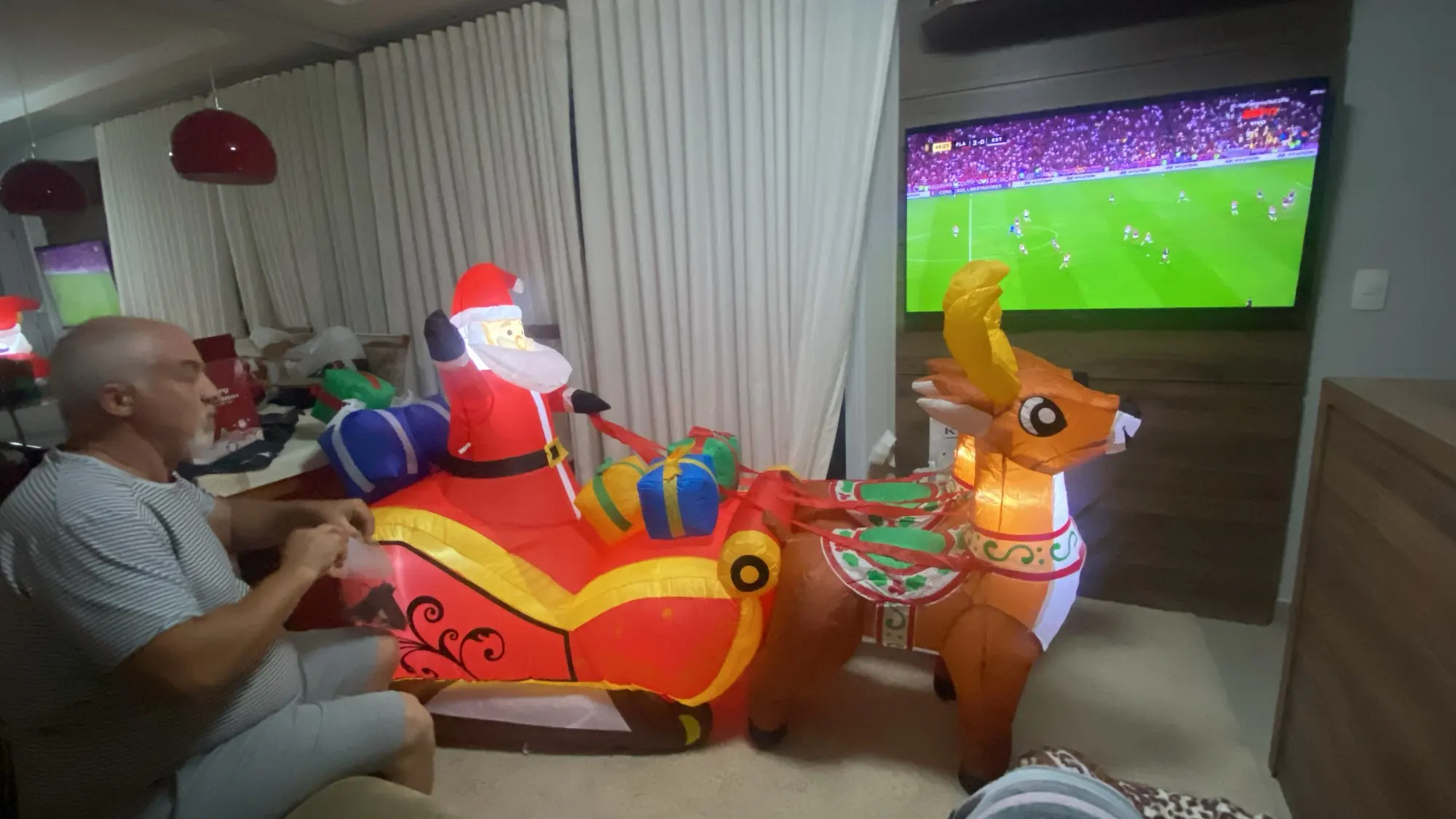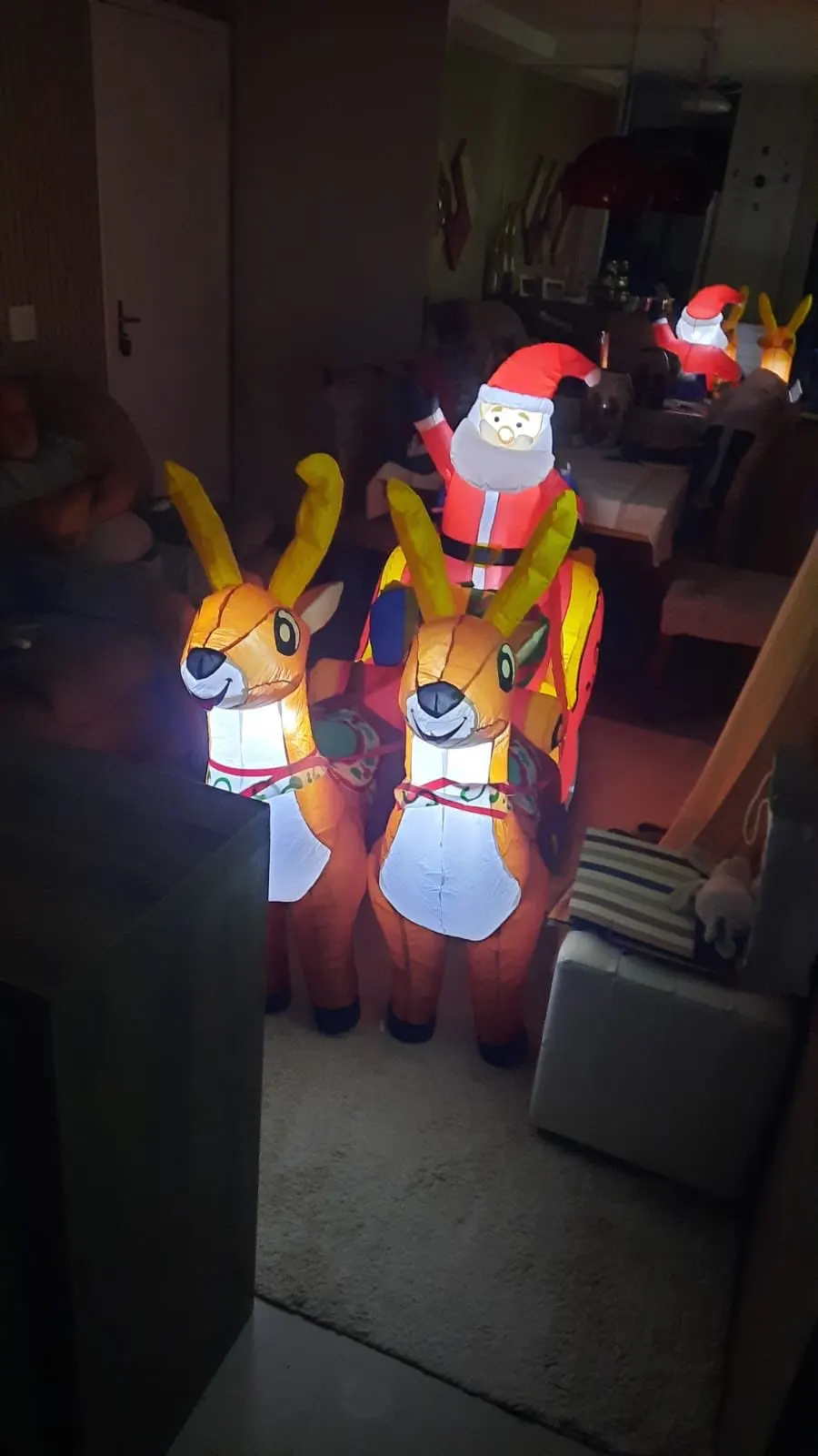 Create a magical Christmas scene in your garden with our Santa and Reindeer Sleigh Inflatable, a beautifully detailed 2.1-metre display that brings festive spirit to life.