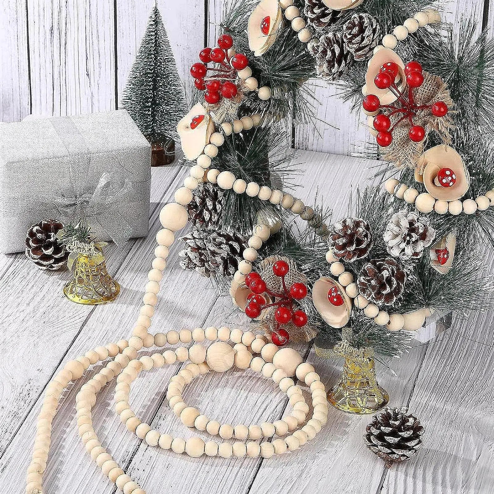 Wooden Bead Garland | Natural Festive Tree & Home Decoration